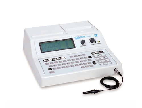 초음파를 이용하여 눈 속의 유리체와 망막, 시신경, 안구주변 구조물을 관찰하고 안구의 길이와 각 구조물 간의 거리와 상태를 측정하는 장비입니다.